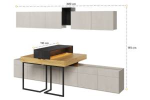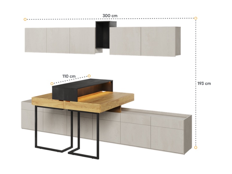 Set 2 birouri mici cu corpuri suspendate TEEN FLEX 04B 300x110x193cm cu 2 comode, sistem de iluminare LED