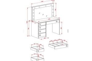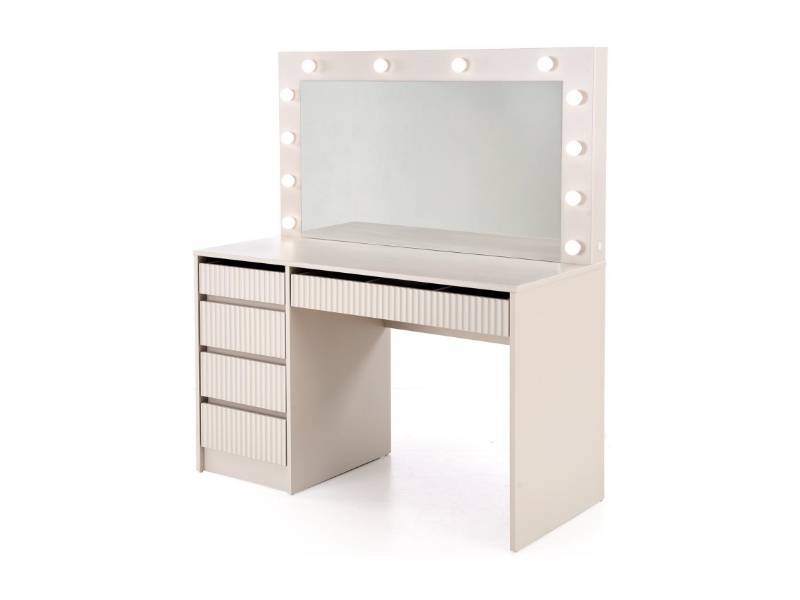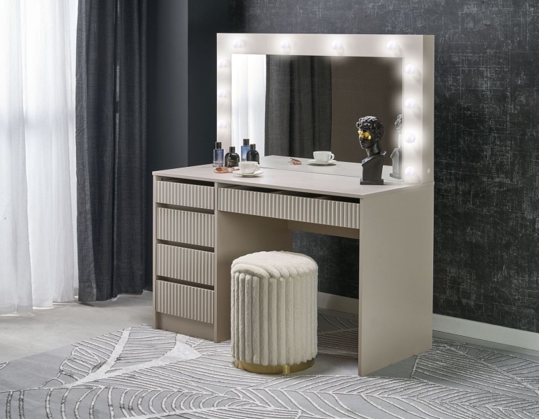 Masa de machiaj cu 5 sertare si oglinda cu led HOLLYWOOD 2 XL CASMIRE 120x140x55cm casmir