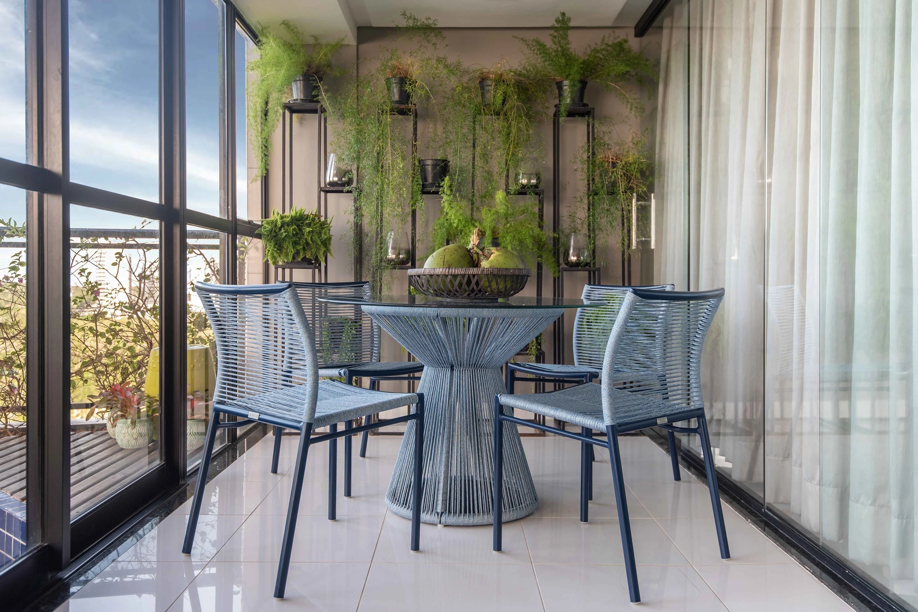 Un set mic de masă și scaune poate transforma balconul într-o zonă perfectă pentru mic dejunuri sau cine intime.