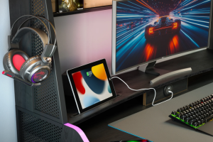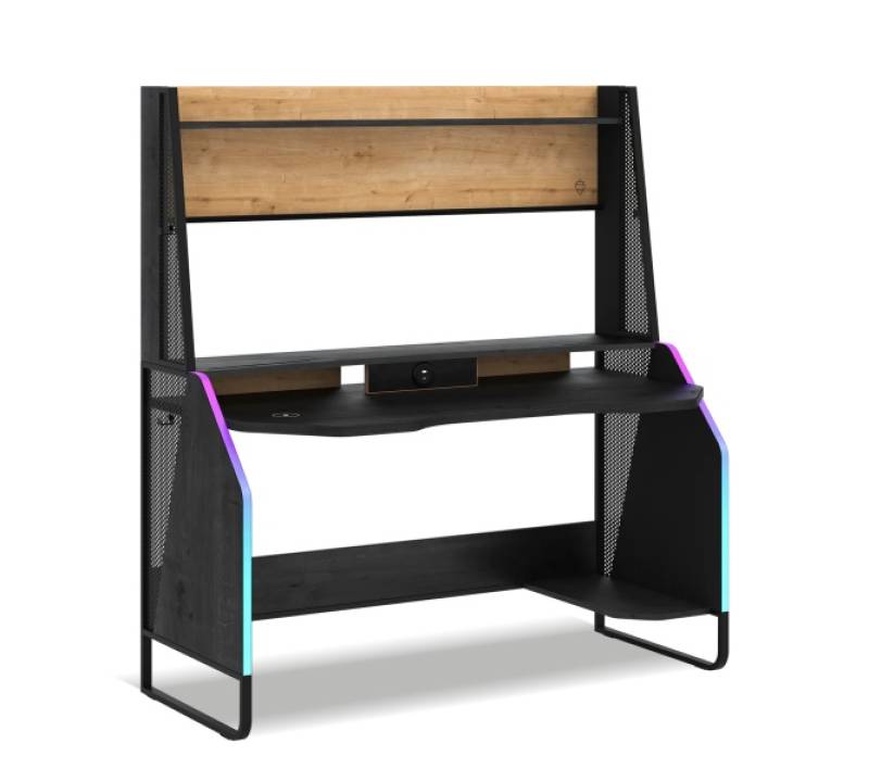 Birou de gaming modern din colectia Black, cu incarcare wireless, USB, LED RGB si suport tableta. Design functional pentru tineri, ideal pentru gaming si studiu.