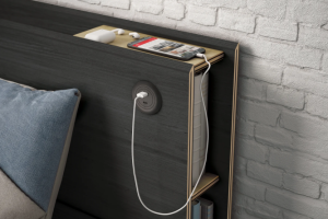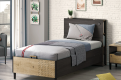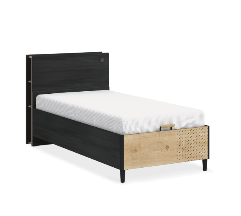 Pat cu lada si tablie cu rafturi (120x200cm) BLACK