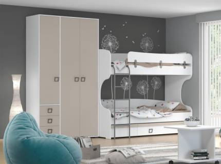 Pat (90x200cm) cu pat suplimentar (80x190cm) KIKI WHITE