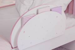 Patul are tablie tapitata din stofa.