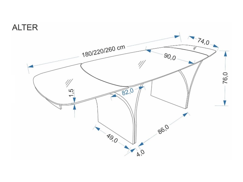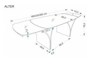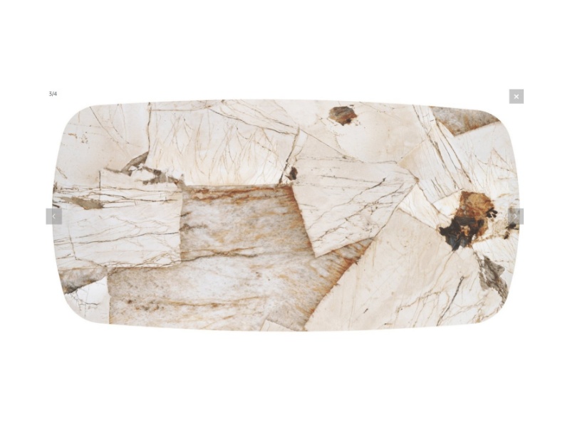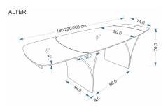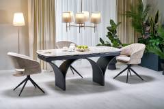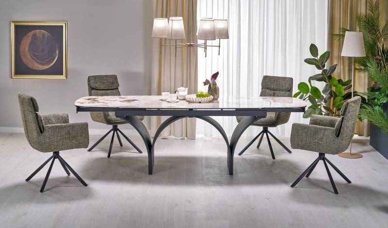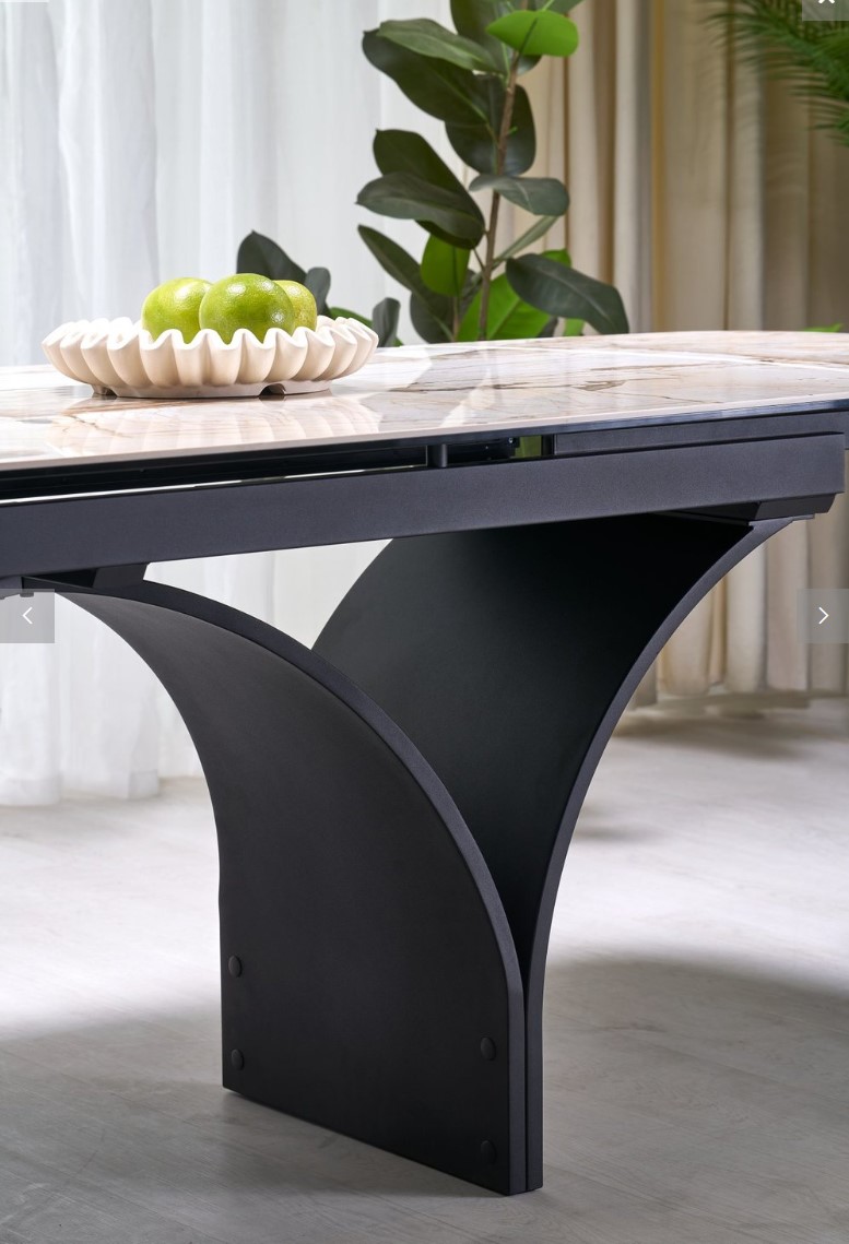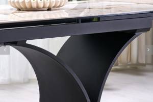 Masa extensibila ALTER in sticla si ceramica cu efect de marmura bej, otel vopsit in camp electrostatic negru 180-260x74xH76cm
