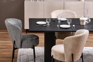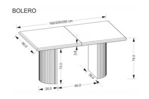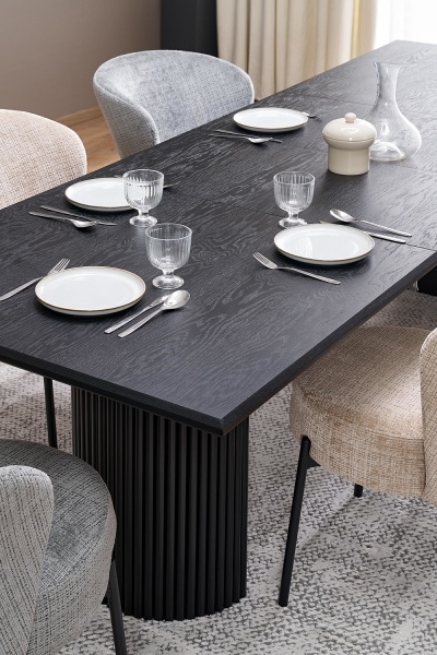 Masa extensibila BOLERO din MDF cu furnir natural stejar negru, otel vopsit negru 160-250x90xH78cm