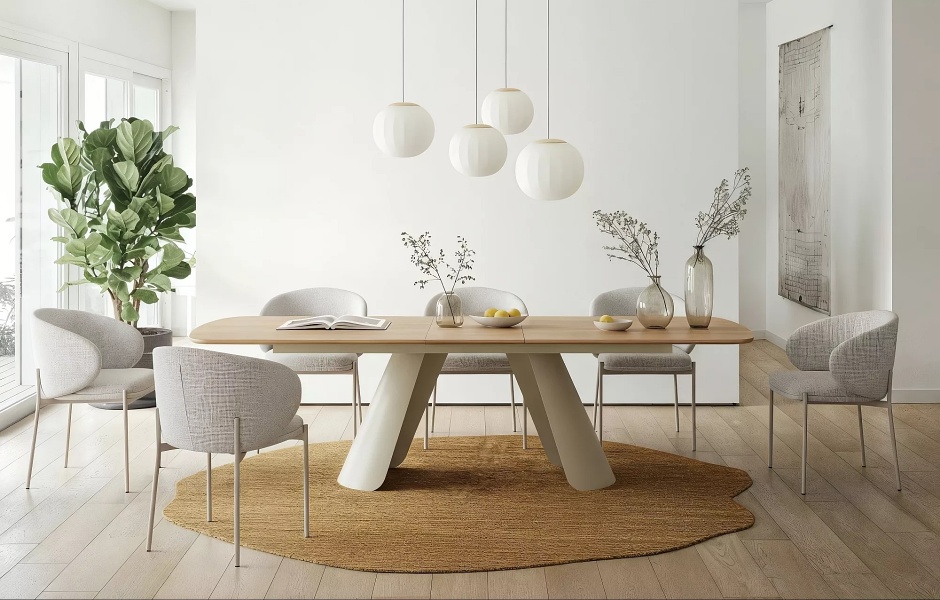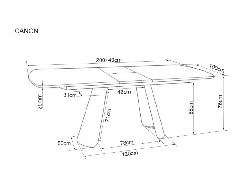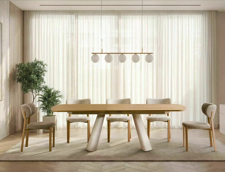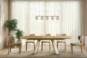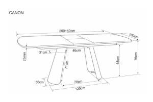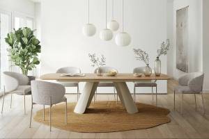 Masa extensibila CANON din MDF furnir natural stejar, metal casmir 200-240x100xH76cm