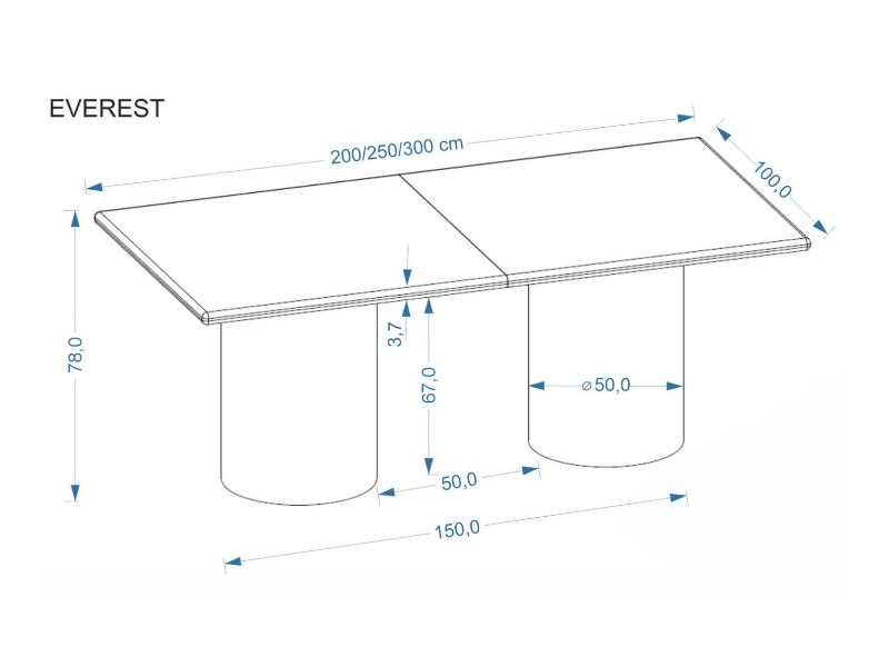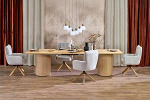 Masa extensibila EVEREST din placa de lemn cu furnir natural stejar in nuanta lemnului 200-300x100xH78cm