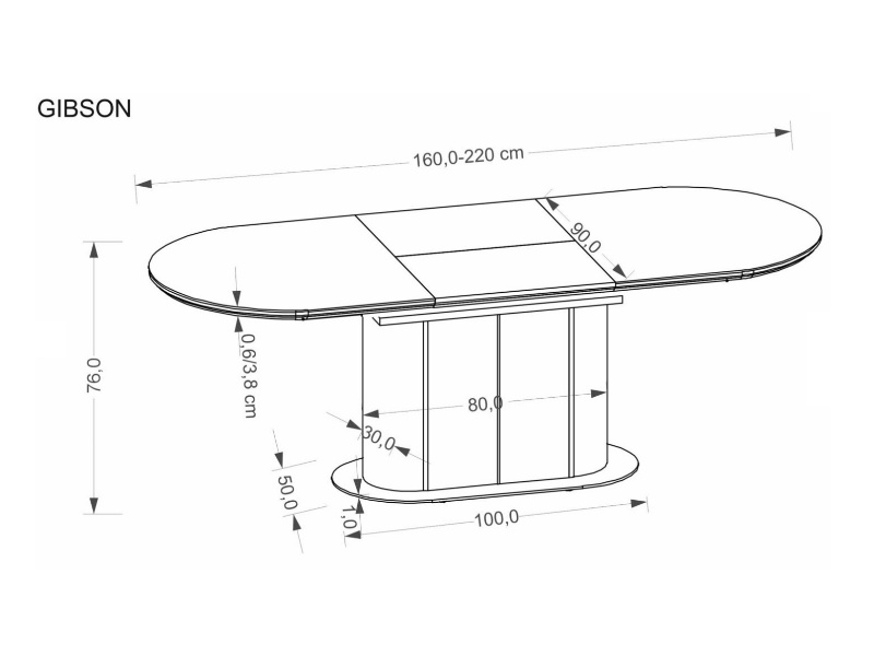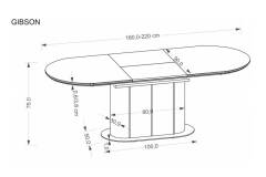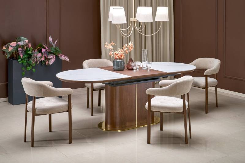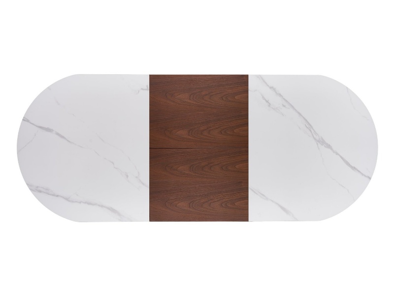 Masa extensibila GIBSON din MDF sinterizat lacuit cu efect de marmura alba, MDF furniruit nuc, otel vopsit negru/ auriu 160-220x90xH76cm