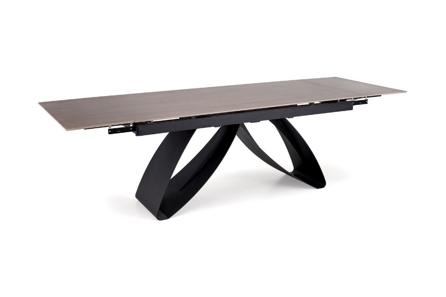 Masa extensibila HILARIO WOOD din piatra sinterizata nuc, metal negru 180-260x90xH75cm