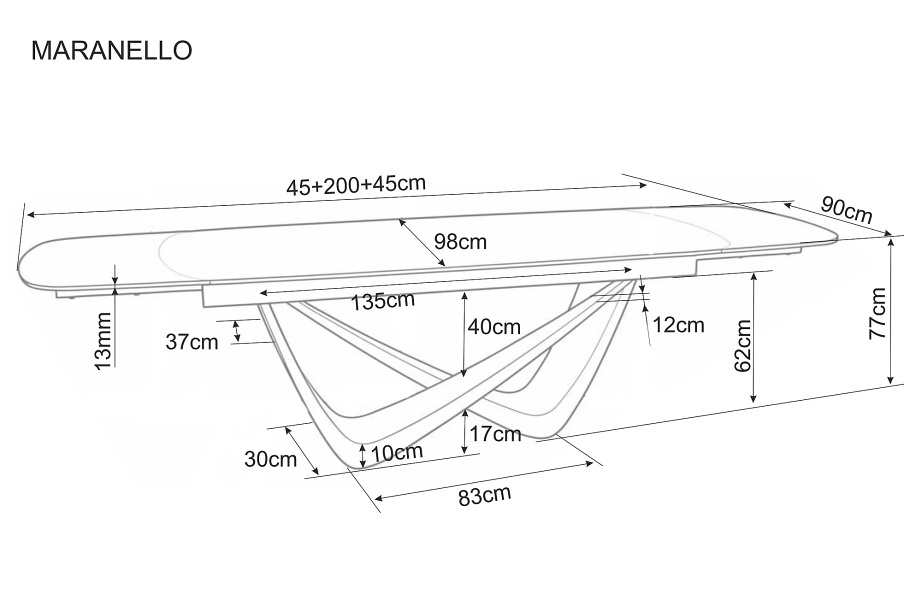 Masa extensibila MARANELLO CERAMIC PANDORO din sticla securizata si ceramica Pandoro alb lucios, metal cupru 200-290x90xH77cm