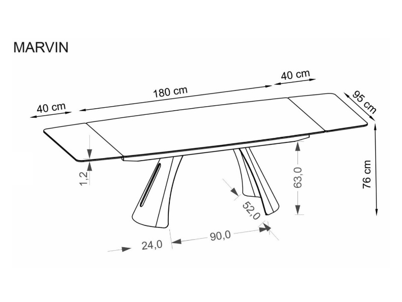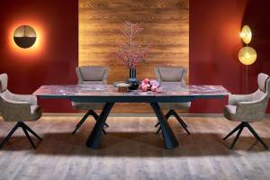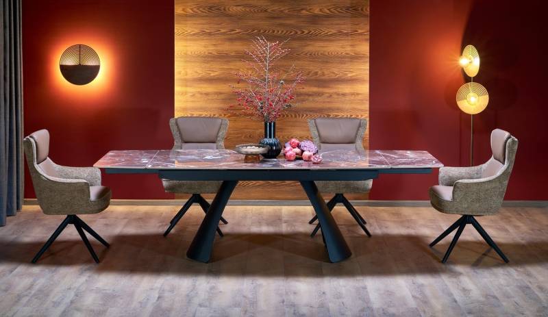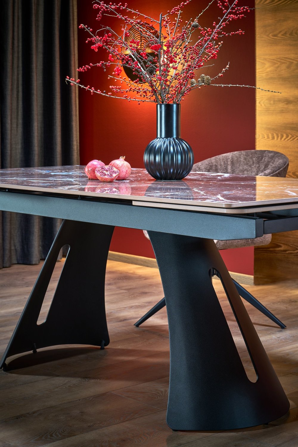 Masa extensibila MARVIN din otel sinterizat cu efect de marmura bordo, otel vopsit negru 180-260x95xH76cm