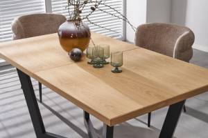 Masa extensibila MASSIVE 2 din placa furniruita si lemn masiv stejar natural, metal negru 160-250-(340)x90xH77cm