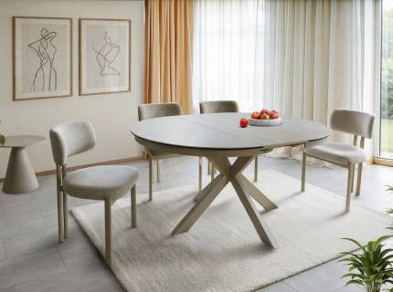Masa extensibila PORTO CERAMIC TRAVERTIN din sticla securizata si ceramica Travertin, metal casmir 120-160xH76cm