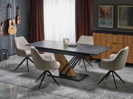 Masa extensibila SALVADORE CERAMIC din cramica cu efect de marmura gri, metal negru 160-240x90xH76cm
