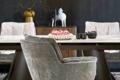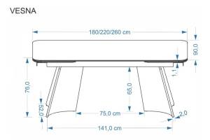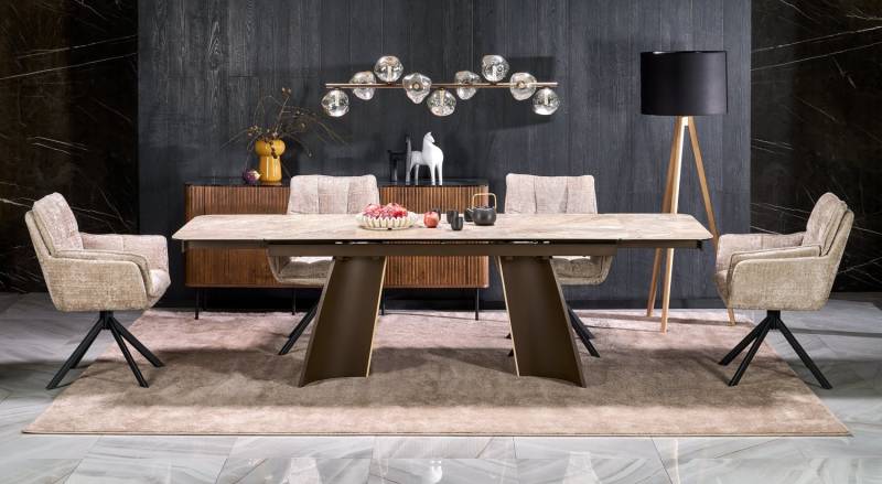 Masa extensibila VESNA din sticla si ceramica cu efect de marmura bej, otel vopsit maro 180-260x90xH76cm