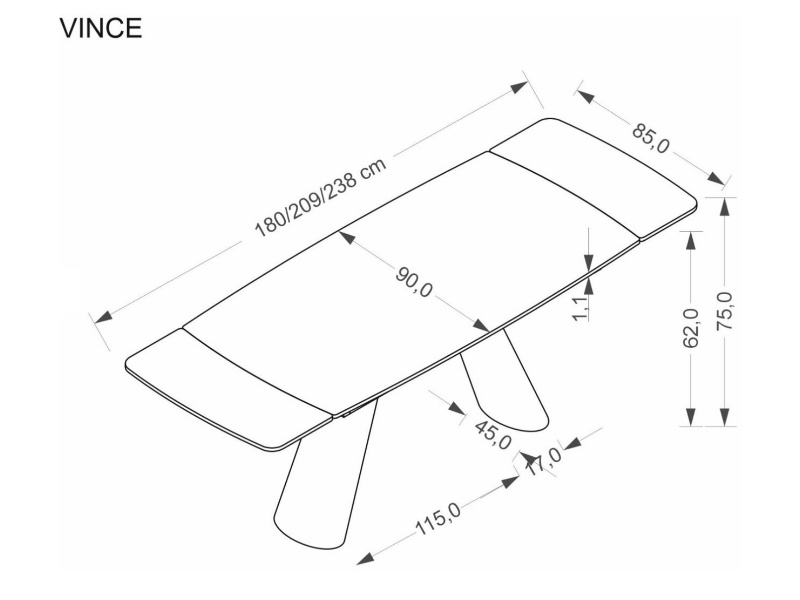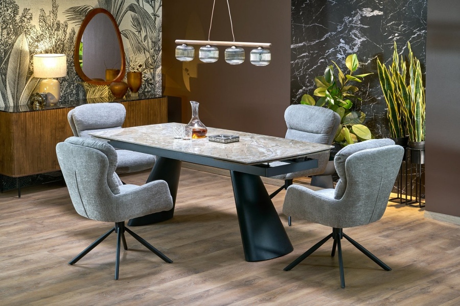 Masa extensibila VINCE din otel sinterizat cu efect de marmura maro, otel vopsit negru 180-238x85xH75cm