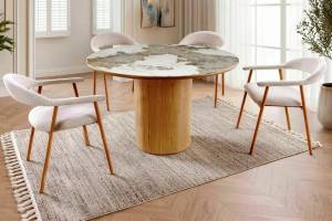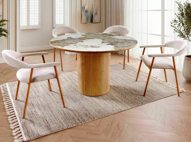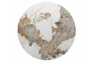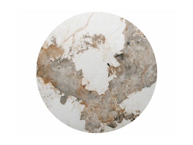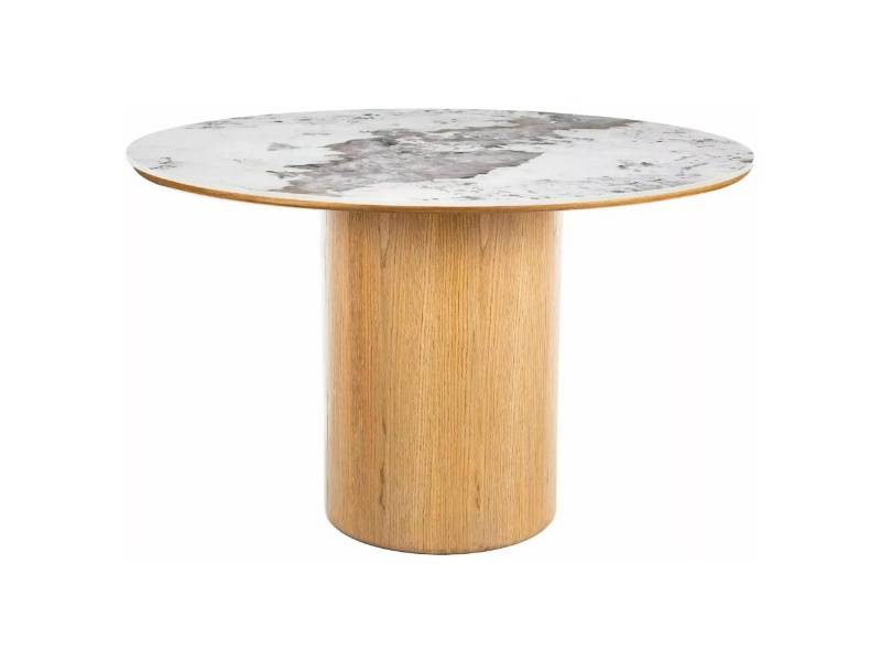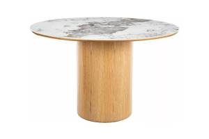Masa RONDO PANDORO din MDF + ceramica Pandoro alb lucios, furnir natural nuc 120xH76cm