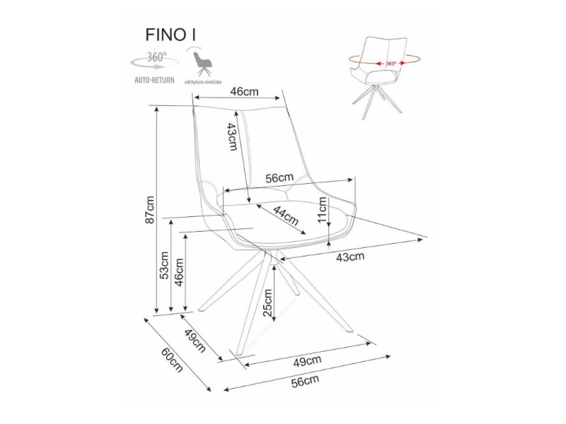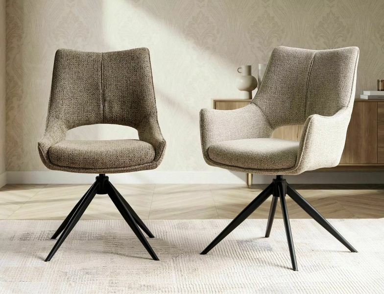 Scaun tapitat FINO I rotativ, functie de inclinare a spatarului, material textil cappuccino 56x60xH87cm, picioare negre