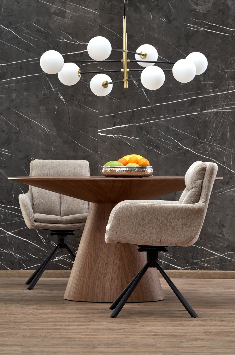 Scaun tapitat K495 rotativ, confortabil, material textil beige 50x50xH87cm, picioare negre