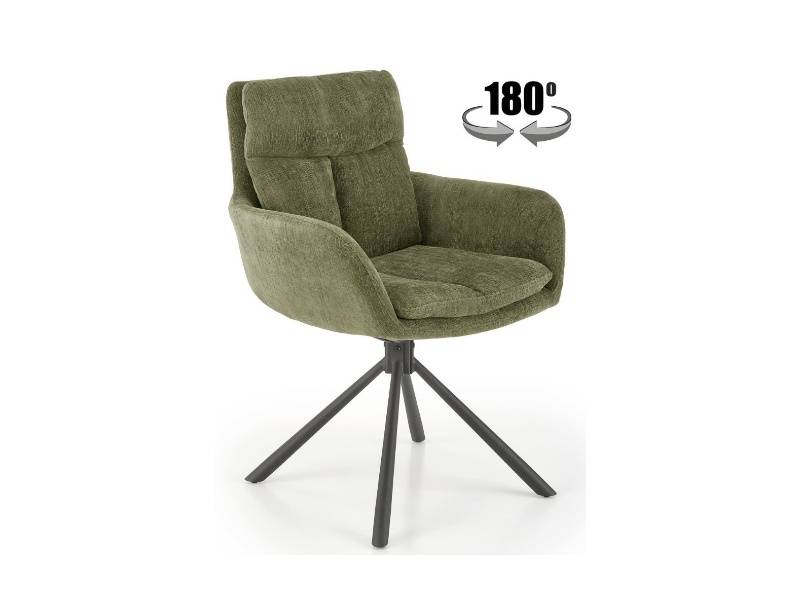Scaun tapitat K495 rotativ, confortabil, material textil olive 50x50xH87cm, picioare negre