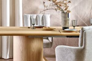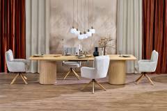 Scaun tapitat K594 rotativ, cu arcuri, material textil beige 60x64xH95cm, picioare nuanta lemnului