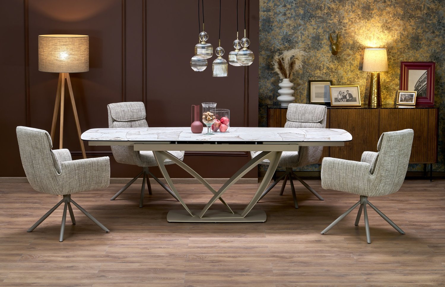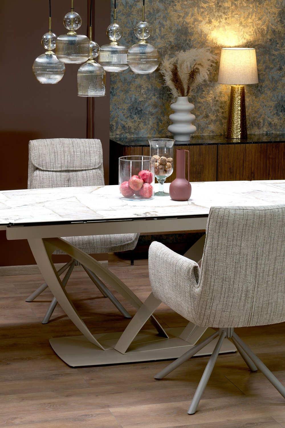 Scaun tapitat K596 CS rotativ, cu arcuri, material textil beige 66x66xH93cm, picioare casmir