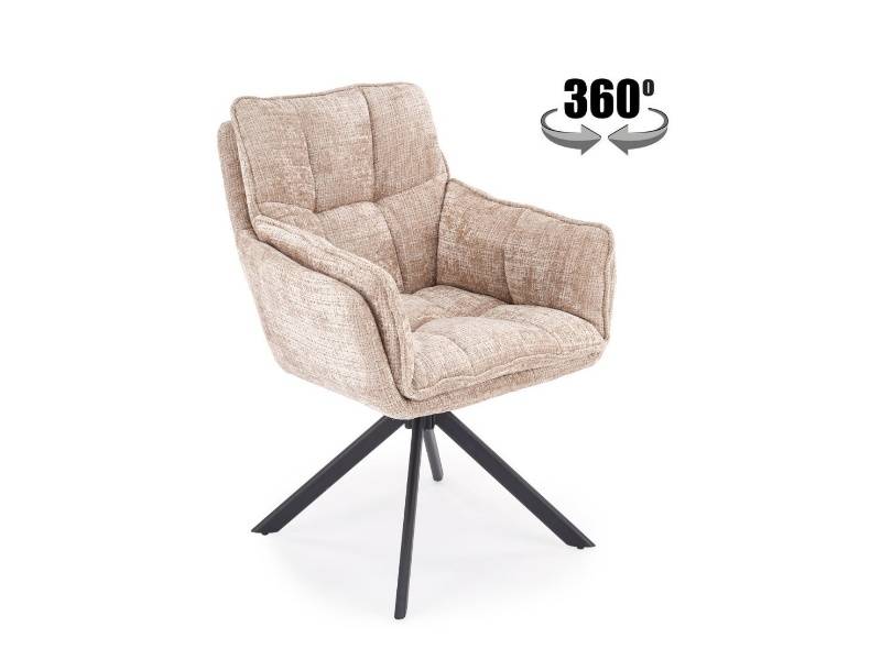 Scaun tapitat K597 rotativ, confortabil, material textil beige 70x67xH90cm, picioare negre