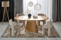 Scaun tapitat K600 material textil beige 55x53xH80cm, picioare tapitate beige