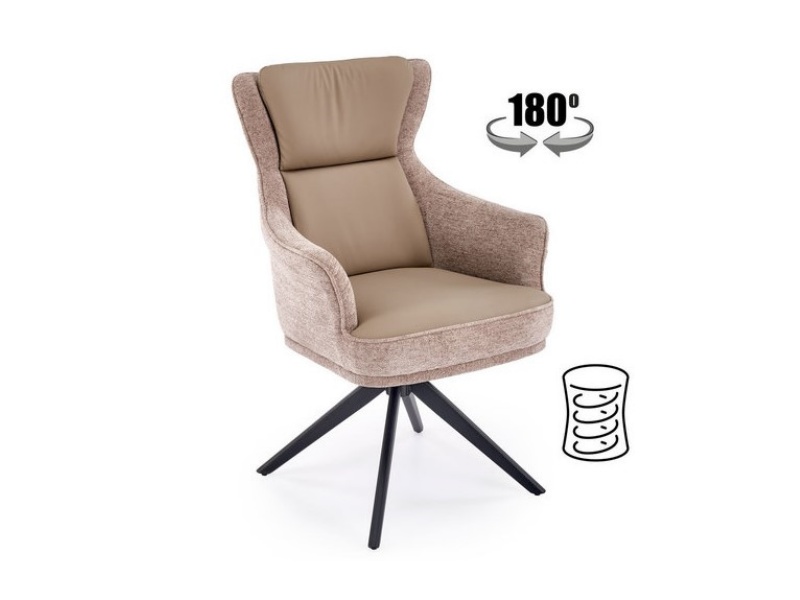 Scaun tapitat K611 rotativ, cu arcuri, material textil dark beige/ ecopiele cappuccino 64x66xH96cm, picioare negre