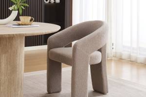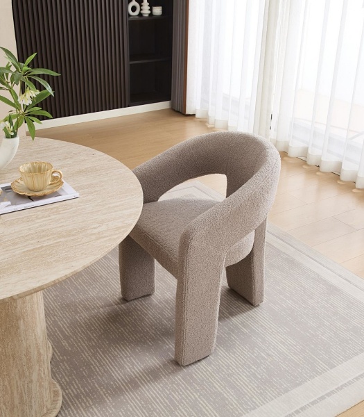 Scaun tapitat K612 material plusat bucle beige 56x54xH76cm, picioare tapitate beige