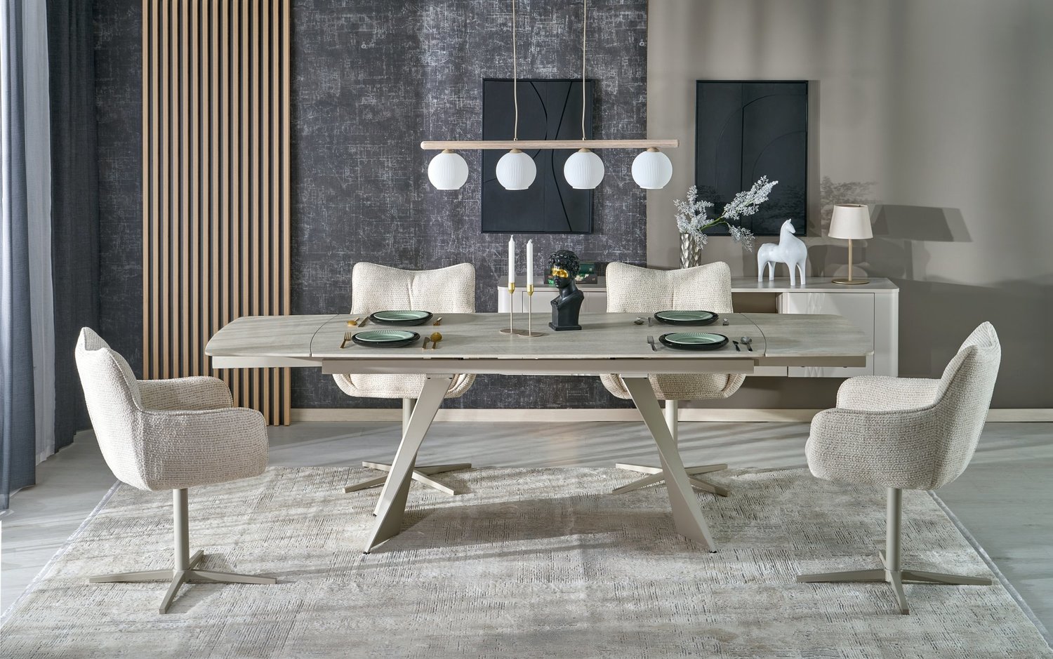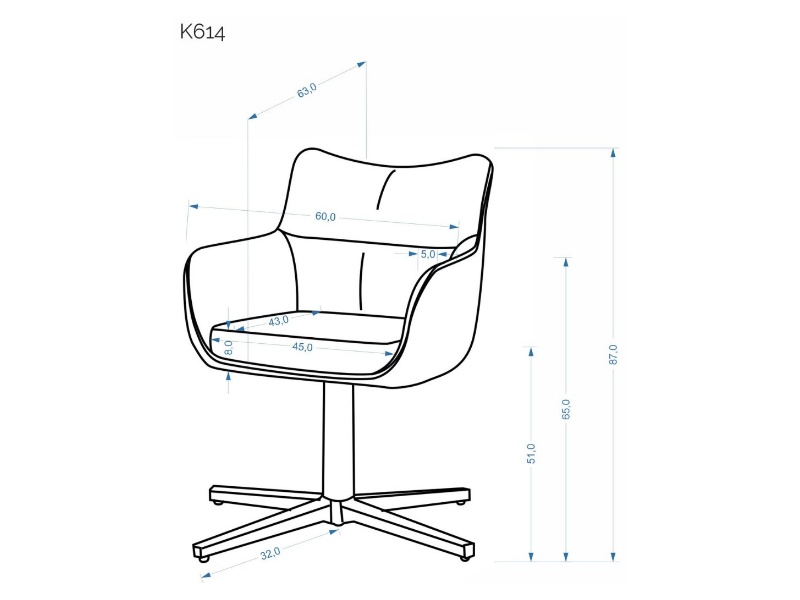 Scaun tapitat K614 rotativ, cu arcuri, material textil beige 60x63xH87cm, picioare casmir
