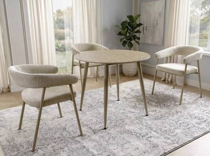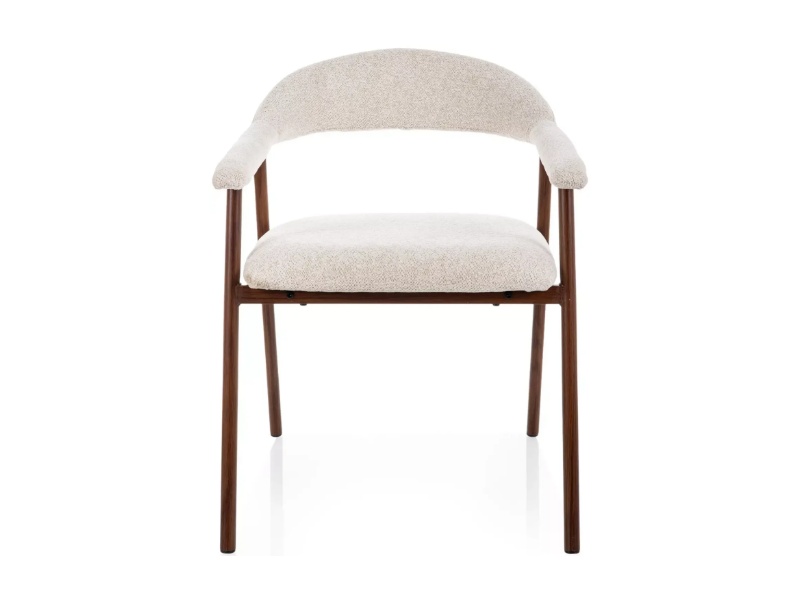 Scaun tapitat LAGOS D RAVEN material textil cream 57x61xH76cm, picioare nuanta lemnului nuc