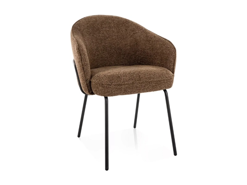 Scaun tapitat NAO NOELLE material textil cappuccino 60x62xH82cm, picioare si cadru negru