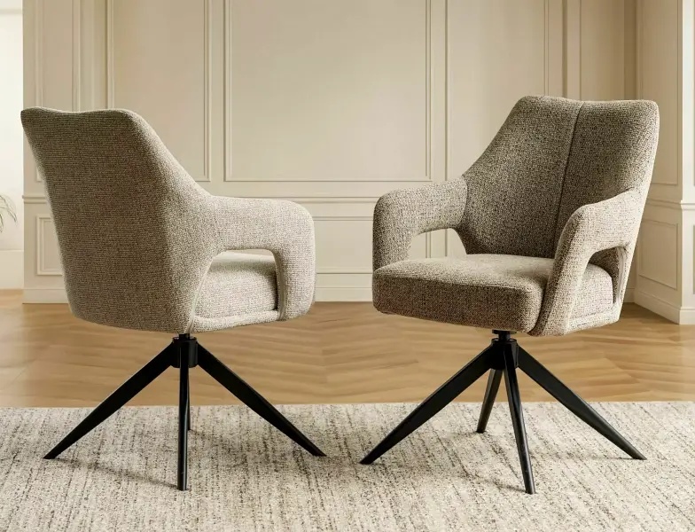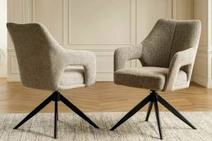 Scaun tapitat OLSEN NOELLE rotativ, functie de inclinare a spatarului, material textil dark beige 59x65xH86cm picioare negre