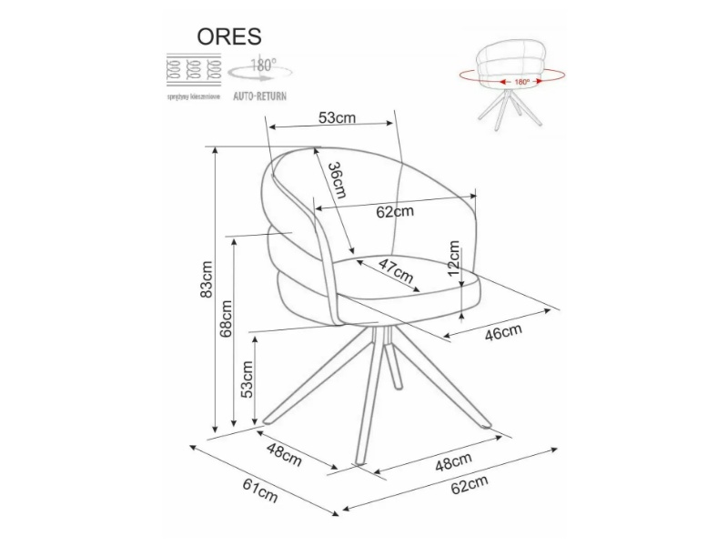 Scaun tapitat ORES rotativ, material textil dark beige 62x61xH83cm, picioare negre
