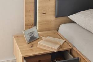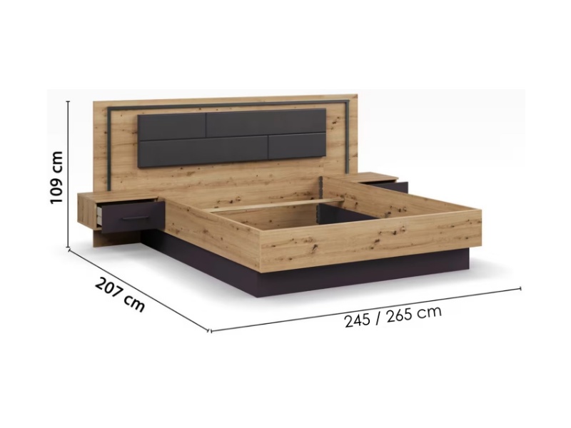 Cadru pat cu led si noptiere incorporate BILBAO (180x200cm) stejar artisan/ gri metalic - ecopiele neagra