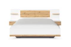 Cadru pat cu noptiere incorporate BOSTON EXTRA 160 / 180cm alb alpin/ stejar Artisan