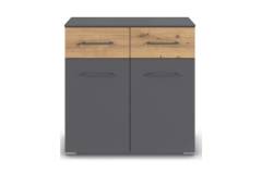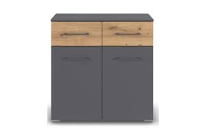 Comoda cu 2 usi si 2 sertare BOSTON EXTRA 80x81x42cm gri metalic/ stejar artisan