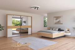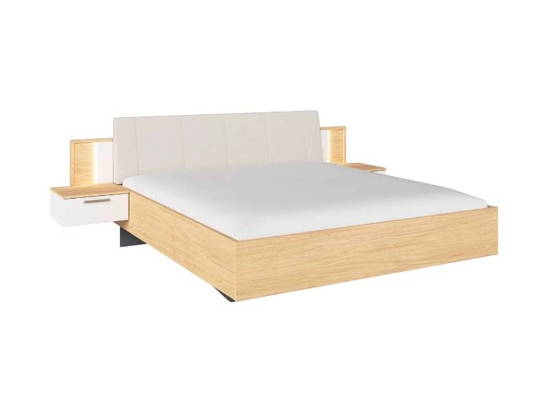Cadru pat cu noptiere si led incorporate CALISTO 160 / 180cm stejar Casella/ alb alpin + Silver