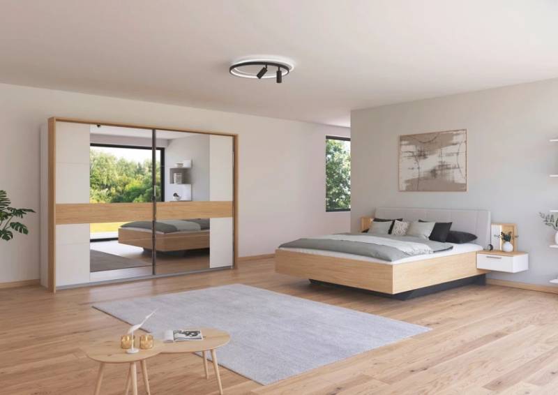 - Nuanta: Alb alpin - aplicatii stejar Casella - oglinda + tablie pat silver