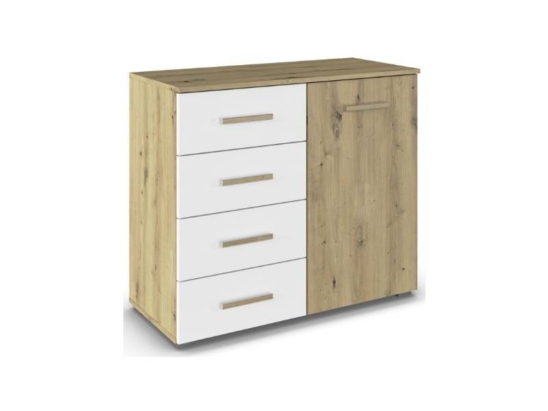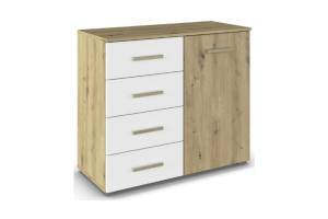 Comoda cu 1 usa si 4 sertare MOSBACH 80x81x42cm stejar Artisan/ alb alpin