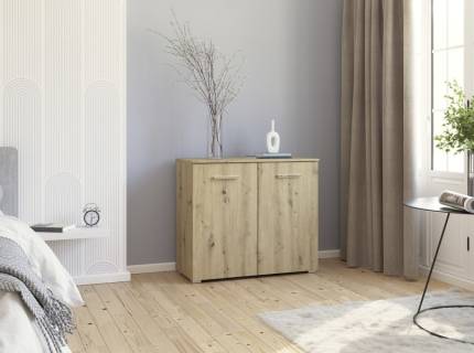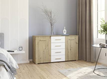 Dulap cu 6 usi cu balamale si 3 sertare MOSBACH 226x210x54cm stejar Artisan/ alb alpin
