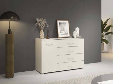 Comoda poate avea sertare cu sistem de culisare pe sine sau usi cu balamale