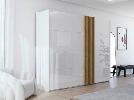 Dulap cu usi glisante KULMBACH 203x210x62cm alb alpin/ sticla fango - oglinda