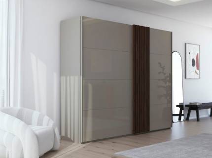 Dulap cu usi glisante MEMPHIS 181x210x62cm alb alpin/ oglinda, maner aluminiu