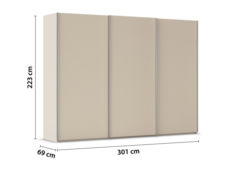 Dulap cu usi glisante TARO 301x223x69cm champagne, maner aluminiu