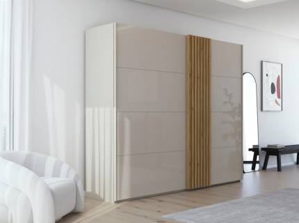 Dulap cu usi glisante TEGIO 262x223x69cm fango mat/ sticla fango- stejar Wild