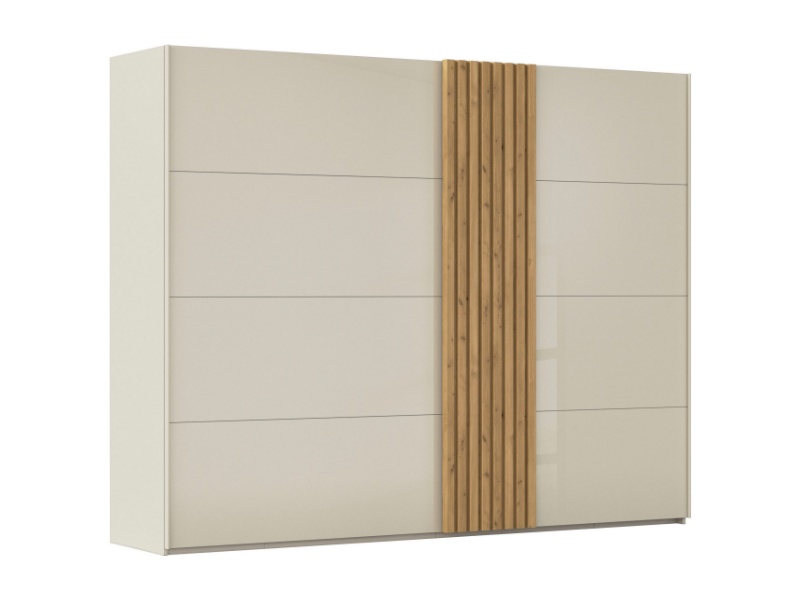 Dulap cu usi glisante TEGIO 281x223x69cm champagne mat/ sticla champagne - stejar Wild