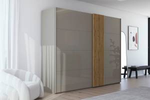 Dulap cu usi glisante TEGIO 281x223x69cm fango mat/ sticla fango - stejar Wild