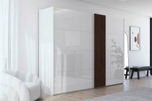 Dulap cu usi glisante TEGIO 301x223x69cm alb alpin/ sticla alba - Walnut
